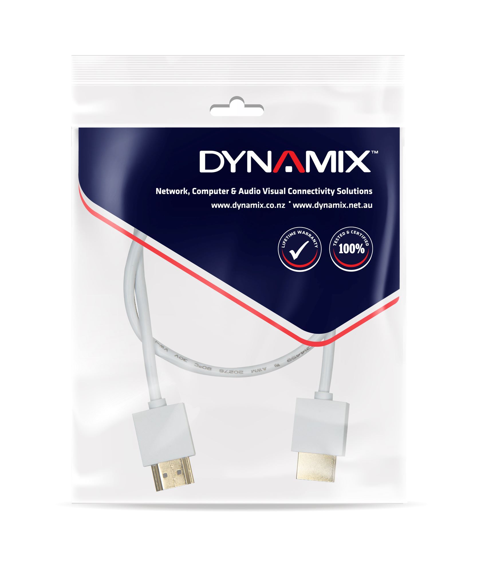 DYNAMIX 0.5M HDMI WHITE Nano High Speed With Ethernet Cable. Designed