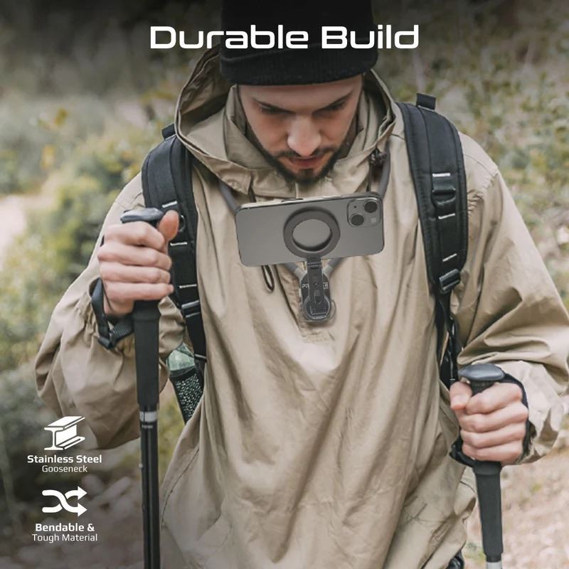 Effortlessly blend comfort and functionality with Promate's MagView, a 360° flexible neckband phone mount designed for the ultimate hands-free POV vlogging experience. Its MagSafe-compatible mounting system ensures seamless alignment, powered by ultra-strong N52 rare earth magnets for a secure hold of your phone during any activity. Built with durable Silicone and premium Aluminium alloy, MagView delivers both reliability and a sleek aesthetic. The ergonomic design ensures all-day comfort, making it perfect for video calls, content creation, or following your favourite navigation apps. Elevate your hands-free perspective with a mount that adapts to your every need, keeping your phone securely in view wherever life takes you.