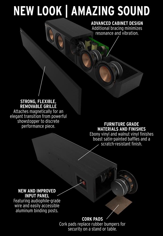 Finishes include ebony vinyl and walnut vinyl that boast satin-painted baffles with a scratch-resistant finish.