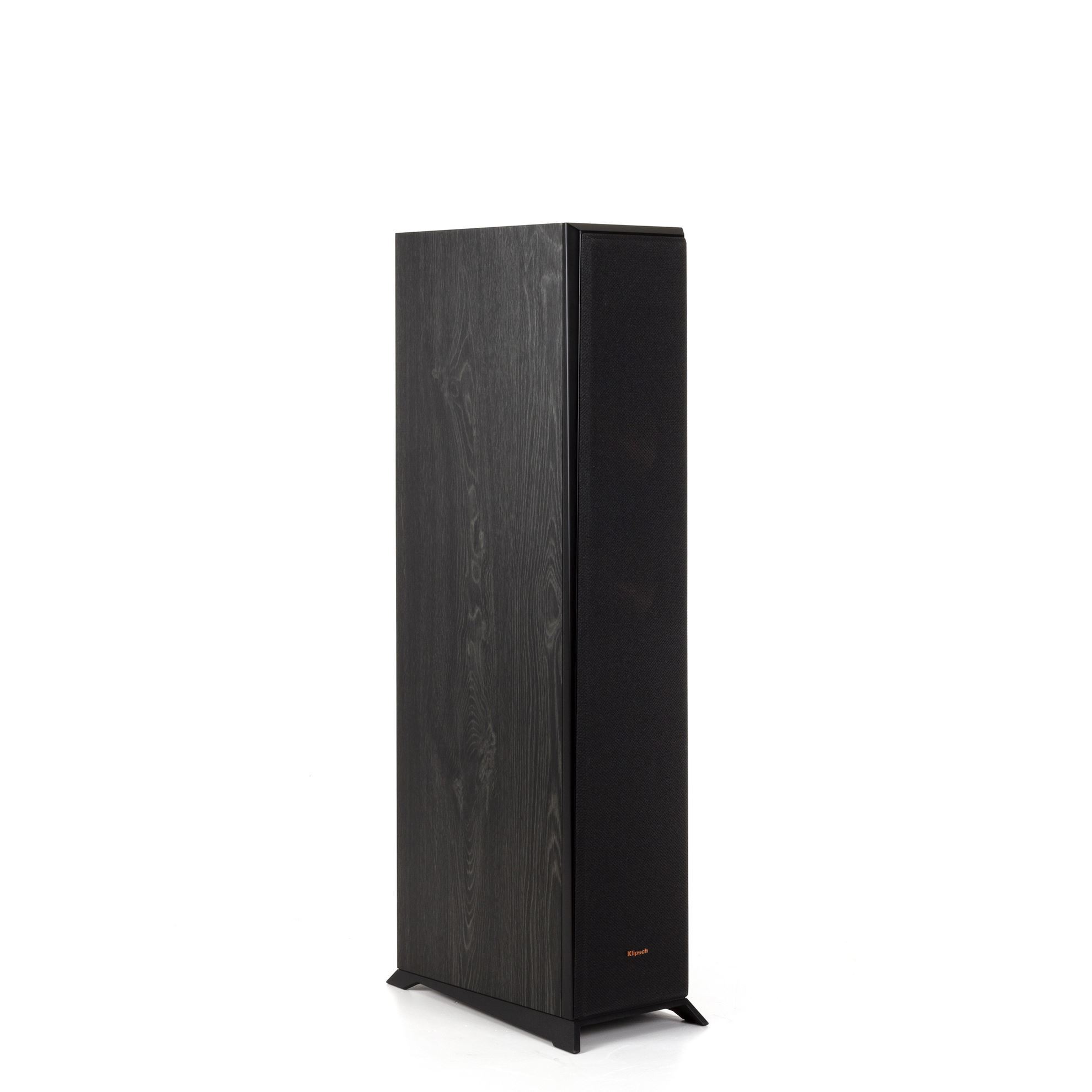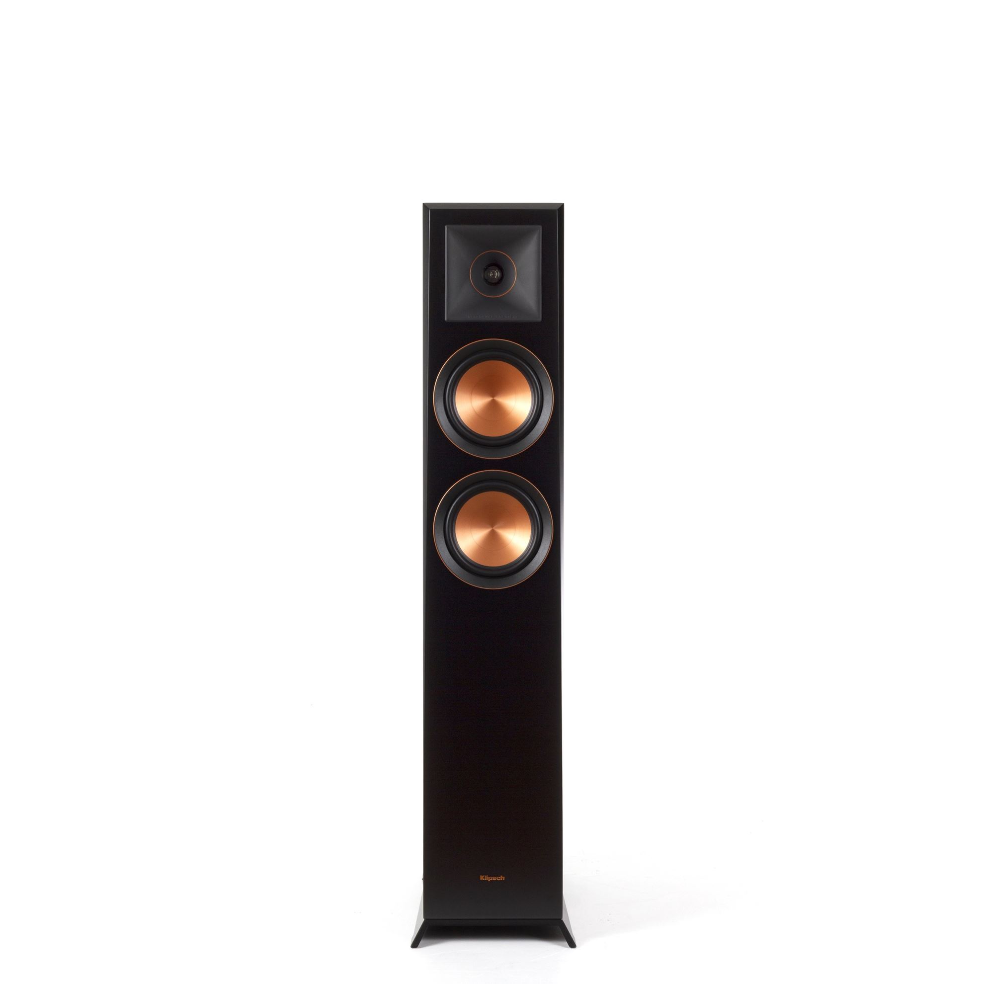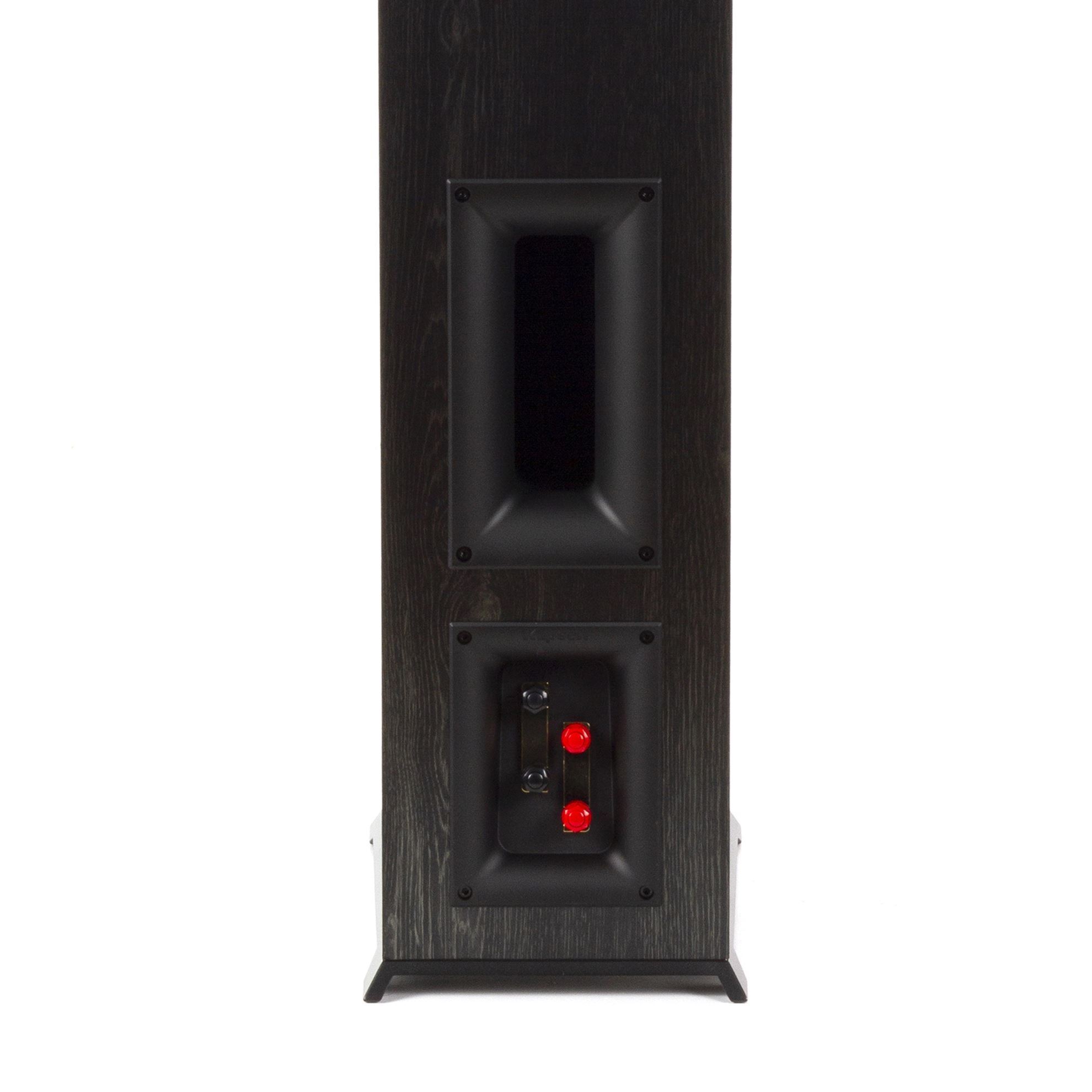 Klipsch floorstanding speaker with 1" titanium LTS vented tweeter, dual 5.25" Cerametallic woofers, 35Hz–25kHz response, 96dB sensitivity, 100W/400W power handling, rear Tractrix® port, bi-wire/bi-amp inputs. Finish: ebony