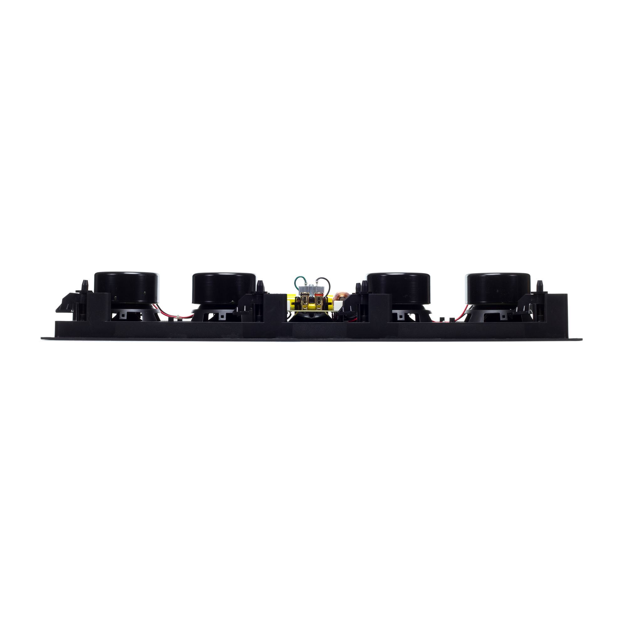 Premium 3-way LCR design with four 5.25” fibreglass woofers for powerful low-end and a 1” titanium compression driver on a 90° x 90° Tractrix® Horn for detailed highs. Delivers dynamic performance with 46Hz–20kHz response, 92dB sensitivity, and 150W continuous / 600W peak power handling. Slim 3.75” depth and a paintable grille allow a clean, seamless in-wall installation.