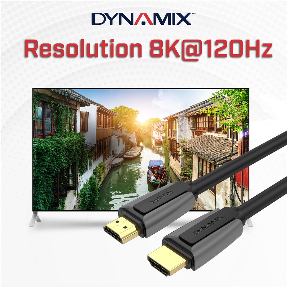 DYNAMIX 1M HDMI 2.1 Ultra-High Speed 48Gbps Cable. Supports up to 8K@60Hz. Supports Dolby True HD 7.1, HDR10+, Dolby Vision IQ, eARC, VRR, HFR, QFT, ALLM, QMS, DSC, G-Sync & FreeSync. Gold-Plated