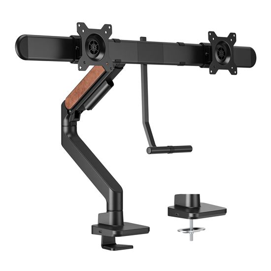 A dependable companion for dual-monitor users. Its sliding rail enables the effortless positioning of two screens, while the interactive handle facilitates one-handed adjustment. Featuring a quick-release VESA plate and topside installation base, it offers unparalleled convenience for the best user experience. Premium leather accents meet sleek functionality, and this arm effortlessly complements any interior decor.