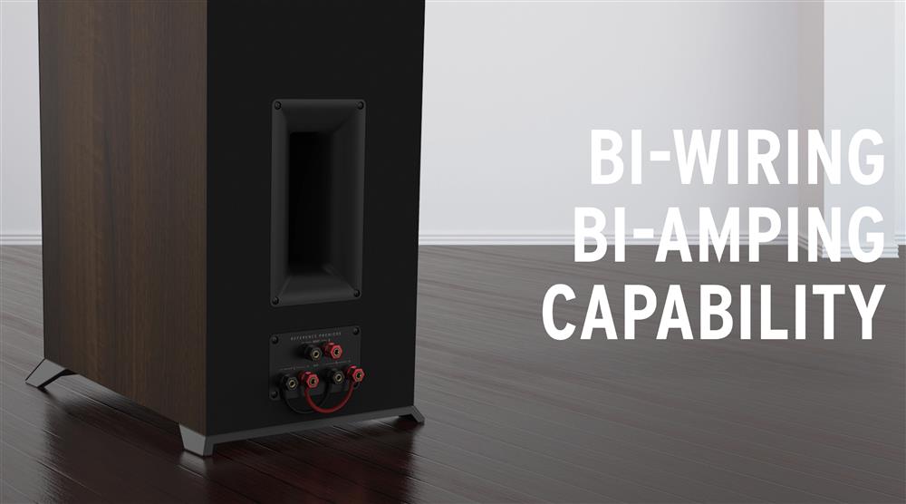 Dual input terminals for bi-wiring / bi-amping capabilities. Bi-wiring separates high and low frequency current into separate speaker cables, reducing intermodulation distortion for clearer midrange. Bi-amping allows for further optimisation of performance with separate outboard power amplifiers for the high-frequency and low-frequency drivers.