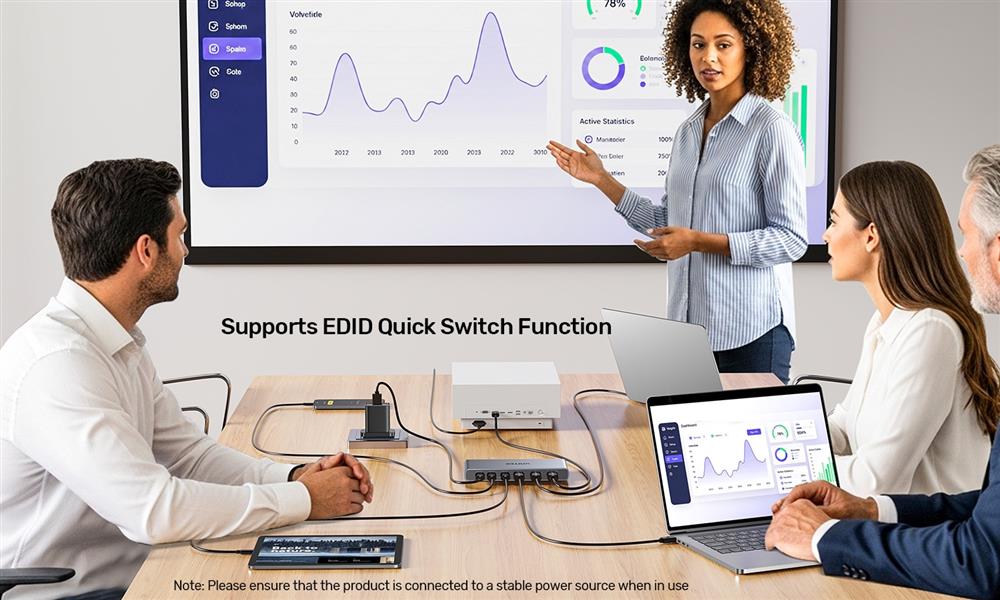 Rapid Source Switching: UNITEK 4K HDMI/ USB-C Switch 4 In 1 Out supports the EDID Quick Switch function (Quick Switch Mode, EDID Memory), facilitating quicker signal source identification during multi-source switching. (Note: EDID retention feature is unavailable for HDCP-encrypted sources.)